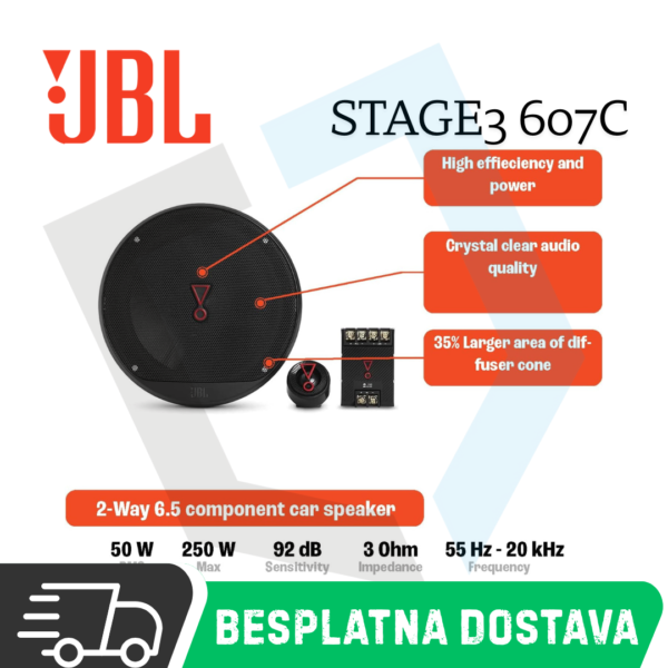 JBL Stage3 zvučnici kombinuju patentirane tehnologije, inženjering svetske klase i JBL profesionalno audio nasleđe kako bi stvorili moćnu liniju auto audio zvučnika. Sa fokusom na performanse i instalaciju, oni donose nenadmašne audio performanse vašem vozilu. Visoko izlazni DCR dizajn od 2 oma izvlači svaki vat snage iz vašeg pojačala ili glavne jedinice, omogućavajući patentiranim Plus One™ sabvuferima da isporuče visoku izlaznu snagu i snažan dubok bas. Naše rigorozno testiranje pouzdanosti na nivou originalne opreme osigurava bezbrižnost kada je vreme da ga upalite za taj neponovljivi JBL nalet adrenalina.